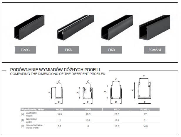 Przykładowe czarne okucia do szkła: