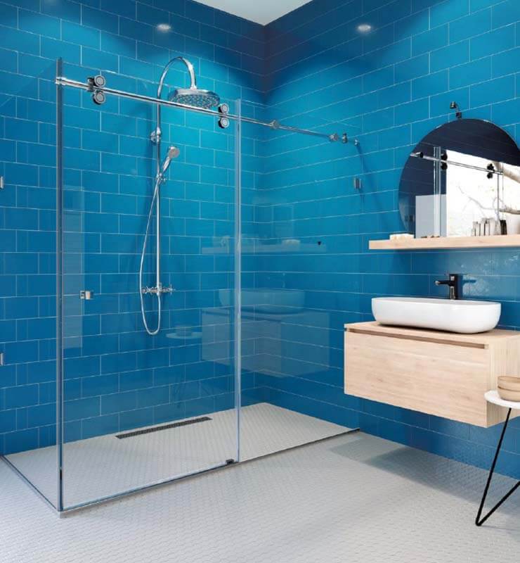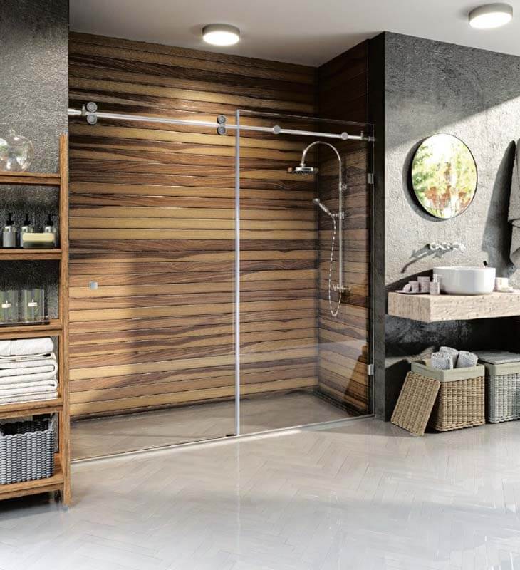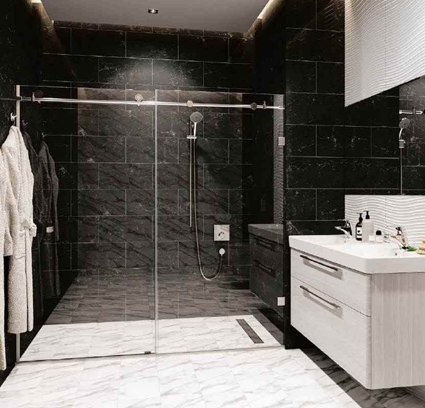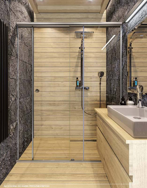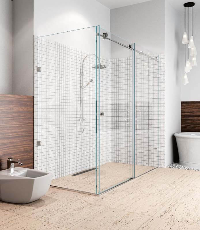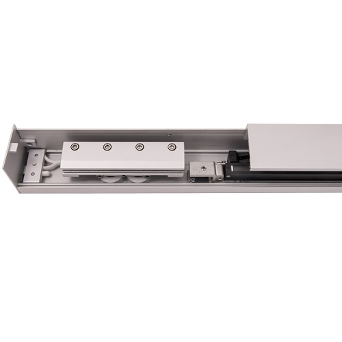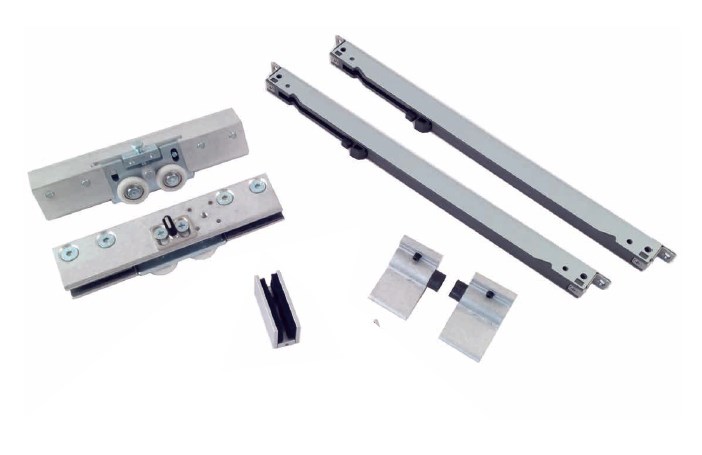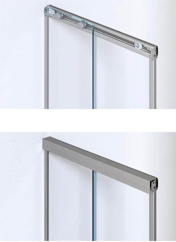 Systemy przesuwne z zastosowaniem prowadnic z mocowaniami do szkła.