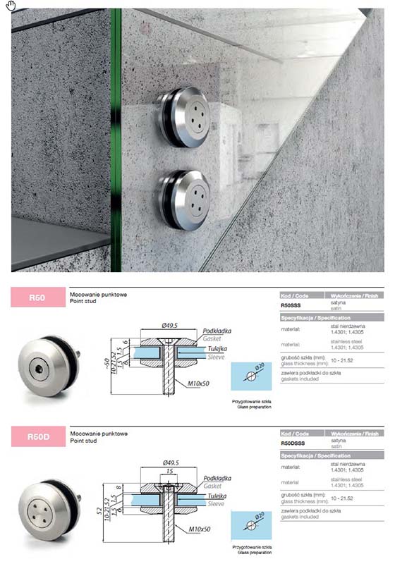 Systemy przesuwne z zastosowaniem prowadnic z mocowaniami do szkła.